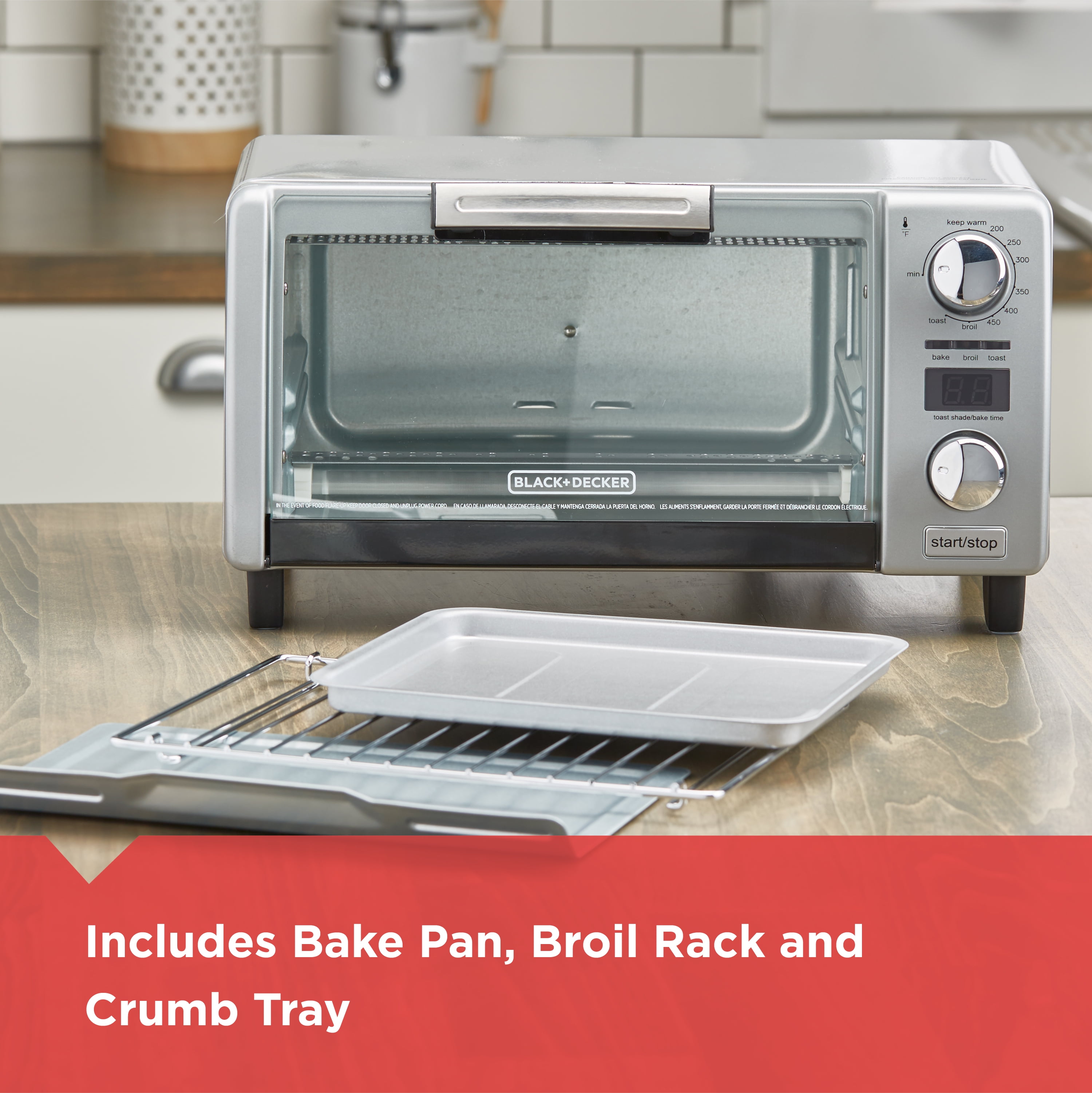 Black Decker 4 Slice Toaster Oven Easy Controls Stainless Steel